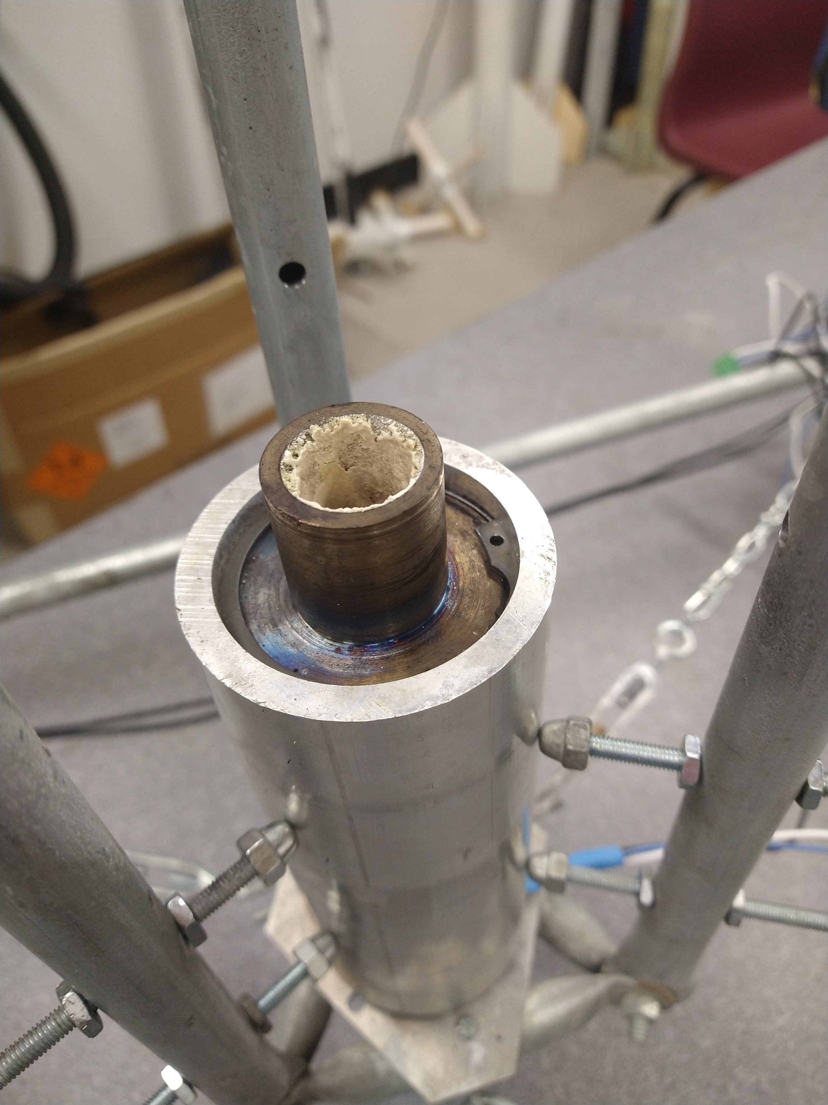 Above: Image of Test Stand with Spent Motor After Test Fire